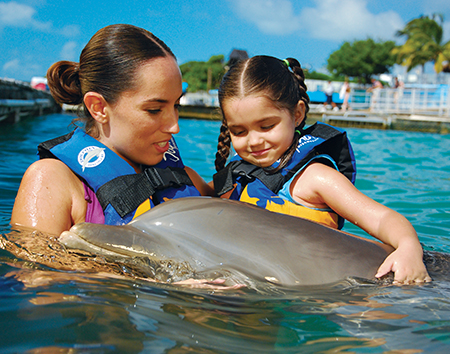 Anímate y realiza esta increíble aventura nadando con delfines en el programa Dolphin Encounter. Conoce todo sobre esta increíble especie marina la cual te dará una afectuosa bienvenida y hasta un beso de delfín.