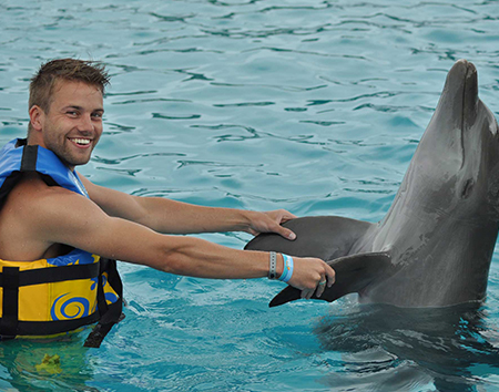 Anímate y realiza esta increíble aventura nadando con delfines en el programa Dolphin Encounter. Conoce todo sobre esta increíble especie marina la cual te dará una afectuosa bienvenida y hasta un beso de delfín.